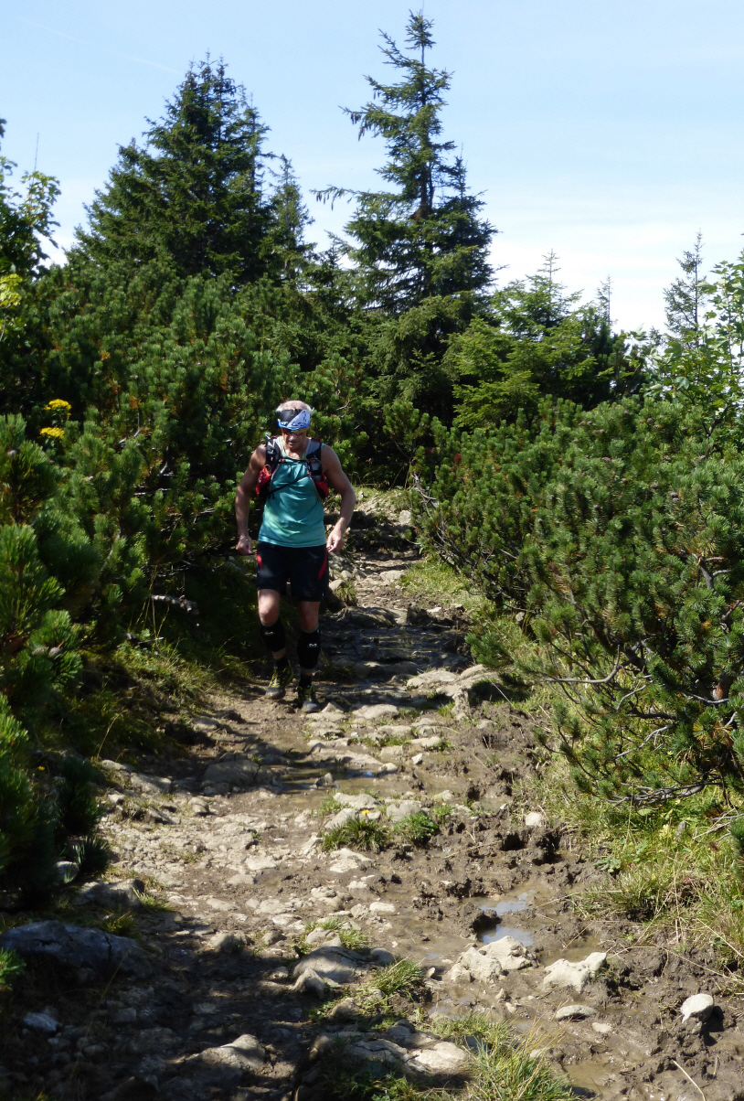 Auf dem Weg zurück zum Hirschberghaus liegt etwas versteckt der Abzweiger zur Rauheckalm - hier beginnt die Schwerstarbeit des Trailrunners: die volle Konzentration halten.