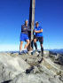 Nach einer kleinen Stärkung geht's den Trail auf dem Grat weiter, der dort, wo er in der Sonne liegt, trocken und gut laufbar ist. Ein flowiger Trail ist es aber nicht, der dazu erforderliche Rhythmus mag sich nicht so recht einstellen. Zudem fällt mir das Atmen schwer, derart, als liefe ich 1000 Meter höher in dünner Luft. Christian hatte vor dem Losfahren auf die Werte der Luftfeuchtigkeit gesehen, und die lagen bei 36 Prozent. Leichte Atemnot kann sich da schon mal einstellen, da die Atemwege gereizt werden. Und ich dachte schon, ich hätte alle Körner auf dem anstrengenden Weg hinauf zur Hohen Kiste verschossen. Ich nuckle am Schlauch meiner Trinkblase und überlege, ob ich bisher zu sparsam getrunken habe. Bald ist das alles vergessen, und wie von einer magischen Kraft gezogen, geht es weiter. Im Schatten erreichen wir kleinere Schneefelder, dann taucht plötzlich der Krottenkopf vor uns auf. Noch ein kurzes Stück und wir stehen wieder in der Sonne an der Weilheimer Hütte.