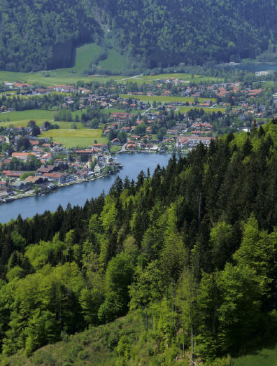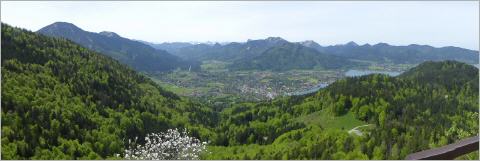 Unwirklich der Blick vom Riedersteinfelsen hinunter nach Rottach-Egern. Die Häuser gestochen scharf. Davor ein Feuerwerk aus Grün. Hier oben nichts los, auch unterwegs nur wenige Wanderer. Weiter zur Baumgartenschneid hoch. Dort rechnete ich mit ein paar mehr Leuten. Denkste! Wie schon auf der Bodenschneid nur eine Dame. Sie strahlt Ruhe und Zufriedenheit aus, und Souverenität, vor allem aber kennt sie hier jeden Berg und Pfad. Ich schätze sie auf über siebzig. Wir kommen ins Gespräch. Letzte Woche war sie auf der Brecherspitz. Welch Zufall! Zu Hause liegt ein Wanderführer mit einem Lesezeichen genau für diese Tour auf dem Tisch, eine Rundtour. Aber: da las ich etwas von einem Drahtseil und einem langen Grat, dem Westgrat, und der Gedanke daran ließ mich erblassen. "Na ja", meinte sie, "am Seil entlang geht es ca. 20 Minuten, aber der Weg ist soweit ok". Sie traf oben wohl ein Ehepaar, wo der Mann auf die Frau schimpfte, weil sie ihm davon nichts gesagt hatte, worauf die Frau meinte, war doch schön! Wir plauderten und plauderten, und zuletzt fragte ich sie noch, wo sie herkommt. "Aus dem Allgäu, ich mache hier Urlaub". Die Frage, die ich ihr dann stellte, hätte ihr jeder gestellt, und ich war auch nicht erste. Sie grinste. Wie lange sie denn noch bliebe. "Bis nach Pfingsten - und wenn es mir dann zu Hause nicht gefällt, dann komme ich wieder hierher. Im Allgäu läge noch zu viel Schnee. Eine Tote hat es auch schon gegeben, am Säuling, eine besonders schlaue Frau aus Baden-Württemberg." Mögen die Allgäuer etwa die anderen BWler nicht? Jedenfalls trafen sich auf der Baumgartenschneid heute zwei, die diese Gegend in ihr Herz geschlossen haben.