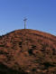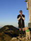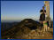 Auf dem Rückweg treffe ich noch jemanden auf dem Weg zum Risserkogel. Er sitzt in der Sonne, wartet auf seinen Kumpel, und beide sind mit pofessioneller Fotoausrüstung unterwegs und wollen bei Sonnenuntergang Panoramabilder machen. Schleppen da einen riesigen Rucksack mit sich, als wollten sie am Gipfel übernachten. Ich bin mit kleinem Gepäck und meiner leichten LUMIX unterwegs und will gucken, ob es am Setzberg zum Sonnenuntergang spannende Motive gibt. Ohne Fotokamera ist heute wohl keiner unterwegs, denn kaum habe ich den Setzberg von seiner steilen bewaldeten Rückseit her erreicht, sehe ich am Gipfelkreuz einen Mann mit seinem Hund. Bevor ich ihn fragen konnte, ob er nicht von mir eine Foto ... fragte er mich und freute sich darüber, dass zu dieser später Stunde noch einer hier hoch kommt und ihn und seinen treuen Begleiter fotografieren kann. Dem Hund gefiel es am Kreuz, und mir gefiel es, dass er sich mit mir hat fotografieren lassen. Noch vor dem Sonnenuntergang machen sich beide auf den Rückweg.