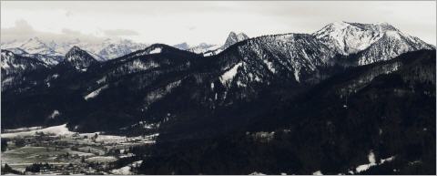 Ein rauhes Lüfterl wehte auf der Aussichtsterrasse des Riedersteinkirchleins, und da der Himmel wolkenverhangen war, lagen die Tegernseer Berge im Süden in einem fahlen Licht. Aus meinem Trinkrucksack holte ich mir meinen Zeichenblock und einen Bleistift und skizzierte das beeindruckende Panorama. (Ja wer's glaubt ;-). Heute macht diese Arbeit bekanntlich die Technik. Hinunter ging es nicht mehr über die Stufen, sondern auf dem alternativen Weg, der aufgrund der vielen schlammigen Stellen genauso viel Spaß machte. Allerdings bin ich mit dem Speedcross 3 zweimal umgeknickt. Mit meinen bodennah gebauten Trailschuhen ist mir das im Sommer kein einziges Mal passiert. Über den genannten Sonnenbichlweg gings weiter, dann noch a Stückerl auf Asphalt wieder zum Auto und ab nach Hause, noch a bisserl was tun.