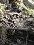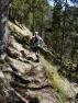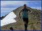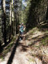 Trocken schlängelt sich der Trail steil nach oben, ein echtes Laufen ist nur selten möglich. Dann aber, wenn es ging, war die Freude doppelt groß. Mit der war es wieder dahin, als ich auf den Schotterweg traf und damit auf das Leid, dass man mit dieser Vergewaltigung der Natur antut. Nutzt alles nichts, gefühlt geht es einen steilen Kilometer auf dieser Wunde dahin. Eine Steilkurve nach links, und ich lande wieder auf einem Waldtrail, noch immer trocken und gut laufbar. Als der Wald lichter wurde, sah ich über mir die Hütte und vor mir die ersten Schneereste. Auch der Weiterweg führte über Schnee, aber nur 50 Meter.