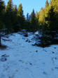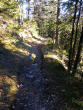 Ich laufe los in südliche Richtung und erreiche bald eine breite Forstpiste, feiner herausgeputz als die Wege im Englischen Garten. Da kann man runter volle Pulle rennen. Erstmal aber geht es hinauf, angenehm ansteigend und schon in der Sonne. Die Handschuhe und meine Jacke habe ich wieder verstaut. In meinem Wanderführer steht, "dass man die Abzweigung, ca. 1100m, nicht verpassen soll", die rechts spitzwinkelig abgeht. Ein Schild soll da auch sein. Nach 2000m immer noch kein Abzweiger. Dann kommt er, hat aber kein Schild. Wurscht, ich laufe hoch. Bald wird der Pfad immer wilder und sieht unbegangen aus. Also zurück. (Auf dem Rückweg treffe ich das junge Pärchen, mit dem ich am Parkplatz gemeinsam los bin. Gefragt, ob sie sich verlaufen haben, weil sie jetzt erst hochkommen, meinte das Mädel, ja, wir haben den falschen Abzweiger erwischt und uns dann bis zur Forststraße hochgekämpft; Zeitverlust 1 Stunde.)