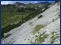 Allerdings wurde das Laufen auch immer schwieriger. Manchmal war es nur noch ein Balancieren auf kippligen Steinen, die als Steinschlag irgendwo mal aus der Wand gefallen waren und sich nun in regelmäßigen Abständen grüppchenweise auf dem Trail langweilten. Zu allem Spaß kam noch ein sehr nasses Rinnsal am unteren Rücken hinzu. Ich kenne das und es bedeutet meistens nichts Gutes. Zweimal schon ist mir die Trinkblase unterwegs undicht geworden. Also Rucksack ausräumen, Trinkblase drücken und sorgfältig mehrmals inspizieren, um ungläubig festzustellen, dass die Trinkblase dicht ist und offensichtlich nur mein Schweiß in Strömen herunter läuft. Aufatmen - ein sich selbst leerendes Wasserreservoir kann ich im Hochgebirge bei den Temperaturen nicht brauchen. Also alles wieder verstaut, schnell in den Riegel gebissen, einen Schluck genommen, ein Foto gemacht und weiter ging's.