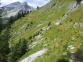 Der Wanderbus RVO 9596 fährt im Sommer in die Eng und brachte mich verspätet, inklusiver diverser Sozialstudien, zur Oswaldhütte im Rißtal. Das beschriebene "gemütliche Einlaufen" erwies sich gleichmal als anstrengender Wirtschaftsweg bergauf und die Sonne brannte schon ordentlich. Vorausgesagt waren 28°. Obwohl die Karten fortlaufend Wasserstellen im ersten Teil der Tour angezeigt hatten, zog ich es vor, mit prallvoller Trinkblase und Reserve loszulaufen. Demensprechend schwer war der Rucksack.