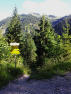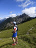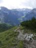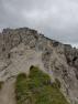 Wir erreichen den steilen kurzen Pfad hinauf zum Kompar, der an einer kleinen Kuppe im rechten Winkel vorbei an Latschen hinauf führt, bleiben aber erstmal auf der Kuppe stehen und staunen: Weit nach dem langgezogenen Grasbergsattel stehen stolz die "drei Brüder" Grasbergjoch, Hölzelstaljoch und Fleischbank, deren Gipfel nicht eingeplant sind, sondern nur die Trails entlang den Südflanken.