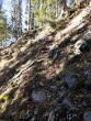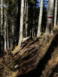 Noch stehe ich in der Sonne. Der weitere Weg liegt im Schatten und führt um das Kreuzbergköpfl herum. Dieses erhebt sich deutlich zwischen Kreuzberg und Baumgartenschneid und kann auf drei Wegen umrundet werden. Ich wähle den kürzesten rechts herum. Der Trail ist schmal, wild, unaufgeräumt und holprig, und zum ersten Mal begegne ich keiner Menschenseele. An manchen Stellen frage ich mich, ob ich hier richtig bin; hab am Köpfl schon mal einen Ausflug in die unwegsame Botanik gemacht. Dann aber erreiche ich den Saglfleck, von wo der Aufstieg zur Baumgartenschneid beginnt, ein feiner Trail, den ich schon ein paar Mal runter-, aber nie hochgelaufen bin. So spannend es bergab geht, so spannend geht es auch hinauf, und das nicht zu kurz. Eine Weile später ahne ich blauen Himmel über mir und freue mich auf das letzte Stückerl in der Sonne. Drei Mountainbiker schleppen ihre teilweise mit Fahrhilfen ausgestattenen Rollatoren ... äh Mountain-E-Bikes den letzten steilen Anstieg zum Gipfel hoch. Später sehe ich dann eine Dame von denen rauchen. Am Gipfel weht ein eiskalter Wind. Erst zu Hause habe ich an den Daten der Foto-Webcam des Wallbergs gesehen, dass die Temperaturen schon ab 13 Uhr deutlich am Fallen waren. Waren es um 9 Uhr noch 9 Grad, betrugen sie um 14 Uhr nur noch 4 Grad. Da die Sonne meist ihre Kraft erst am Nachmittag richtig entfalten kann, ist es bei stabilem Wetter andersherum. Ein Wetterwechsel also bahnt sich an.
