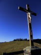 Keine Überraschung war, dass es auf Sonnenterrasse der Neureuth proppenvoll war. Tegernseer, Urlauber, einfach ois, was Beine hat und in der Sonne sitzen will. Den Blick auf die Teller und in die Gläser erspare ich mir, nuckle Brackwasser durch den Plastikschlauch und schaue in die umliegenden Berge, erlaufene und noch zu erkundende. Ein Stück der finnischen Melodic Dark-Metal-Band Wolfheart erfasst mich und schubst mich auf den Trail in Richtung Gindelalm; wenigstens in den Ohren Wintergefühle. Zur Alm laufe ich heute nicht, sondern biege weit vorher rechts am Beginn der Schneid ab. Der sonst batzige Aufstieg ist heute trocken wie ein in Indien sonnengetrockneter Kuhfladen. Das lässt hoffen. Und in der Tat, der wellige Wiesenbuckel mit Kreuz in der Mitte ist hartgefroren und ohne Schnee und Eis - genau, was ich mir gewünscht habe! Mir gefällt sowas: du rennst über Graswellenkämme mit Blick auf Wendel- und Breitenstein, über dir der stahlblaue Himmel und unten die Gindelalmen im Sonnenlicht. Du bretterst auf den ebenso trockenen Hang zu, der dich hinüber zum Kreuzberg bringt, rennst auch diesen so gut und schnell du kannst hinunter, durch die Senke, und drüben wieder hoch. Und schon stehst du neben der romantischen Kreuzbergalm auf der sonnenlichtdurchfluteten Almwiese.