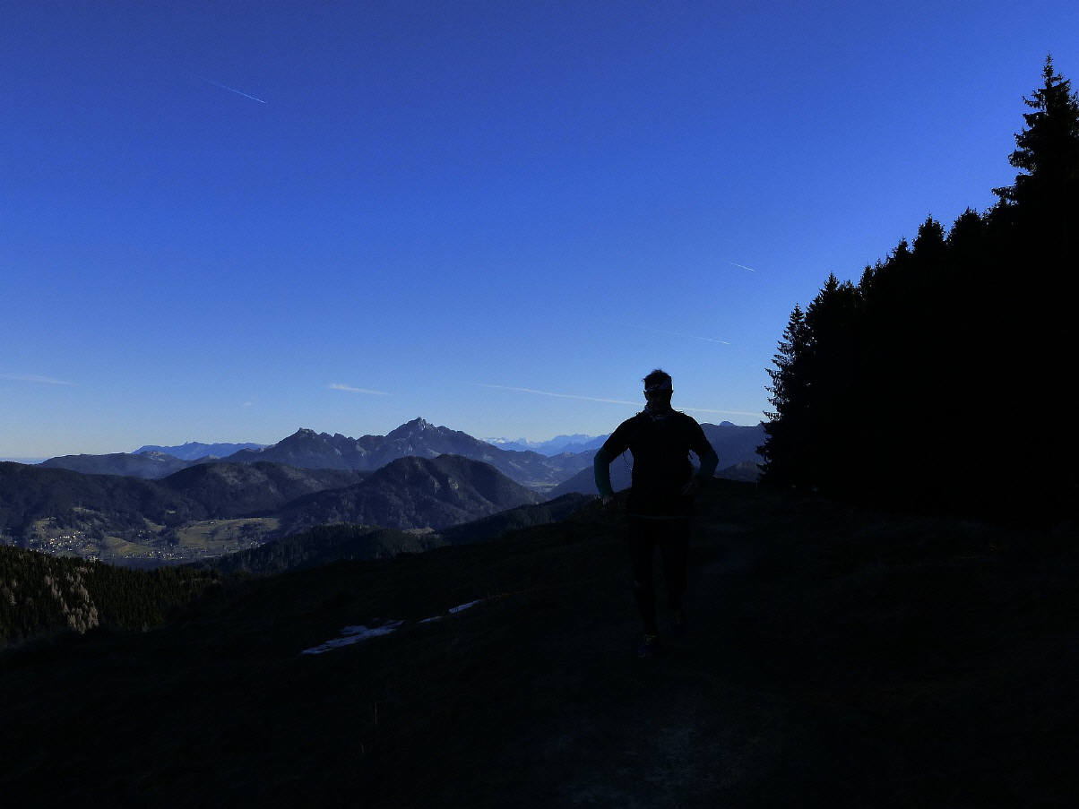 Dachte immer, Weihnachtsstress sei typisch weiblich. Als dann am 24.12., kurz nachdem die Geschäfte geschlossen hatten, mein Router seinen letzten Schnauferer gemacht hatte und ich nicht mehr internet(t)eln konnte, war es vorbei mit meiner Gelassenheit. Warum ich dann an den Feiertagen dauernd herumbasteln musste, von Misserfolg gekrönt, und nicht gleich in die Berge bin, weiß ich nicht. Glücklicherweise hielt sich das Hoch, und so machte ich mich zwei Tage vor Silvester auf, um mich auf meinen Haustrails über Tegernsee-Stadt auszutoben, Ballast abzuwerfen.