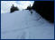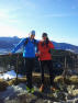 Es fällt mir schwer, wieder aufzustehen. Nicht, dass ich jetzt schon platt wäre, nein, nur leider liegt jetzt ein schattiges Stück vor uns. Huift ois nix, kenna ja ned übernachtn da herobn. Christian guckt, wie er immer guckt, guckt er auf seine virtuelle Karte. Dummerweise erwähnte ich, dass ich vor drei Wochen links um das Kreuzbergköpfl gelaufen bin (tatsächlich war es der kürzteste Trail zum Sagfleckl rechtsherum). Vielleicht hat Christian deshalb so lang geguckt. Jedenfalls meinte er, wir sollten es links herum probieren. Durch tiefen Schnee laufen wir hinunter und stapfen dann ein Stückchen hoch, bis wir auf einen leicht abfallenden Weg landen, der trotz dickem Schneebelag gut zu durchpflügen war. Mir kam er bald spanisch vor, nix von der Wildheit und steilen Hanglage des anderen Pfads. Wir landen in einer kleinen Senke, von wo der Weg vom Hennerer (Schliersee) heraufkommt. 10 Minuten Hennerer steht auf dem Wegweiser. Im Sommer ein stark frequentierter Weg, heute nix los. Und auch nix vom Wochenende her gespurt. Der Schnee wieder richtig tief. Wieder stapfen wir nach oben. Auch wenn meine Füße trocken sind, die Kälte hat meine Zehen erreicht.