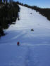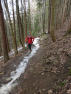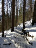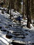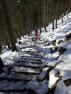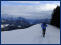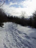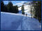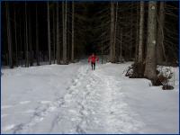 Da freut es mich, dass wir uns am Sagfleckl gegen den Aufstieg zur Baumgartenscheid entscheiden - die eine Variante, um zur Riedersteinkapelle zu kommen. Die andere geht über den langweiligen langgezogenen Prinzenweg. Dafür geht es weiter im Laufschritt. Ein Unimog oder so könnte hier gefahren sein, denn zwei dicke Reifen haben zwei "Trails" in den ca. 30cm hohen Schnee gelegt, auf denen ich gut zurecht komme. Christian mochte sie nicht und lief durch den Schnee. Ich auch bald wieder, denn bei einer Kurve hatten die Spuren ein Ende. Nicht aber der verflixte Prinzenweg. Endlich erreichen wir die "Berggaststätte Riederstein am Galaun."