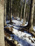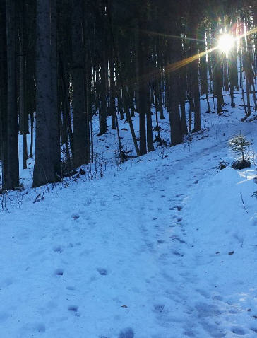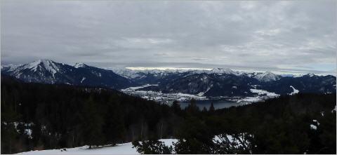 Beim Absprechen, wie weiter, verwechsle ich mal wieder mal einen Namen. Der von mir angedachte Weg hinunter nach Tegernsee heißt natürlich wie sein Berg, Leebergweg. Mir stand Luv wohl immer schon näher. Bin beim Segeln früher mit meinem Finn-Dinghy deshalb auch oft mit anderen zusammengestoßen. Weshalb ich Läufer wurde. Den Leebergweg hinunter heißt es, ein bisschen aufpassen, denn der niedergetretene Schnee ist teilweise noch gefroren, dazu lugen hin und wieder spitze Felsstückchen hervor. Bald geht er in einen Forstweg über, der uns auf den sonningen Tegernseer-Höhenweg führt, auf dem Christian und ich uns auf den wirklichen März freuen, wenn auch weiter oben der letzte Schnee von der Sonne weggefressen worden ist.