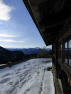 Mag man den Namen auch noch so voll packen und ihn immer wieder ändern, wenn man zwischen den Jahren an einem Tag wie im Frühling, der 29.12. war's, den Laden zu läßt, weil Dienstag Ruhetag ist, dann tut man sich keinen Gefallen. Damals war viel los, aber keine Bewirtung. Heute lief die "Bewirtung", eine junge Dame, raus und rein wie ein Duracell-Hase, doch alles Trommeln nützte nichts, die Gäste blieben aus. Dennoch, schön war sie anzusehen ... die Hütte im Sonnenlicht mit dem Holz davor. Ohne große Pause liefen wir weiter, der Kreuzweg wartete auf uns, ein steiler Weg mit ca. 500 Stufen, sagt Wikipedia. Ehrlich?! Egal, bin sie noch immer gerne hoch -gelaufen, -gestiefelt, -gestolpert. Die Aussicht auf der kleinen Plattform vor der Kapelle hinunter nach Rottach-Egern und in die Tegernseer-Berge wie eine Radierung. Ab jetzt geht es fast nur noch bergab. Wir entscheiden uns für den sogenannten leichten Weg ohne Kreuz, laufen nochmal am Gasthaus vorbei, das vor kurzem noch Wirtshaus am Galaun hieß. Galaun ist gälisch und heißt steiler Hang. Der Duracell-Hase hoppelt wieder auf der leeren Terrasse herum.