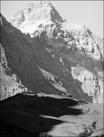 Ich dachte schon, an diesem sonnigen Morgen Anfang Oktober würde es eng werden in der Eng, und vor lauter Fotografen würde ich auf dem großen Ahornboden keine Bäume sehen. Es war dann aber nur einer mit Kamera unterwegs, der wie ich auf der teilweise noch im Schatten liegenden und von Kuhklauen zerfurchten Almwiese herumstakste, auf der Suche nach Motiven.