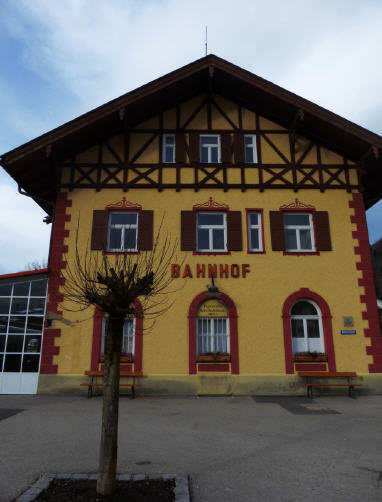 Ich stehe in der kargen Halle des Tegernseer Bahnhofs, der 1902 im Heimatstil mit Zierfachwerk erbaut worden ist. Erst dachte ich, Fahrkarten gibt es nur am Automaten, dann aber las ich, dass der Schalter am Sa. und So. von 5:20-15:00 Uhr und 15:25-23:00 geöffnet hat. Ich also rein und mich angestellt. Bald war ich dran: "Einmal Schliersee und zurück". Die ältere Dame antwortet freundlich: "Gerne, es geht aber über Holzkirchen, dort müssen Sie umsteigen". "Nein, bitte nicht Holzkirchen", winke ich ab, "ich möchte über die Neureuth". "Hamwa ned, die BOB ist keine Seilbahn", sagt sie und schaut mich schräg an. Ich schaue schräg zurück und sage: "Na gut, dann mache ich das eben zu Fuß." Und draußen war ich.