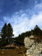 Den Wendelstein hatte ich auch deshalb gewählt, weil es von Osterhofen nahe Bayrischzell einen Sonnenhang hinauf geht (jetzt, wo ich das schreibe, einen Tag später um 12 Uhr, schneit es am Gipfel bei -1,7 Grad.) Entsprechend klein waren die restlichen Schneefelder und der Matsch im Schatten von Felsen und Fichten. Dafür aber wurde es richtig steil und mir ein wenig mulmig bei dem Gedanken, hier wieder hinunter zu müssen - nach dem tollen Start!