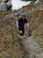 Als ich mich nach dem Sturz über das Steinchen aufgerappelt hatte, sprach ich mir erstmal Mut zu und gab mir eine Ohrfeige, um in den Trailrunning-Modus zu kommen. Den aber brauchte ich erstmal nicht, denn die ersten 200 Höhenmeter zur Hochkreut lief ich auf Asphalt, bzw. auf der Wiese daneben. Aber schon auf den nächsten 440 Höhenmetern zu den Wendelstein-Almen ging es über gut von der Natur ausgebaute Trails, die zudem leicht zu laufen waren, da nicht allzu steil und kaum verblockt. Das änderte sich kurz nach der Stelle, wo man sich entscheiden muss, ob man die Bocksteinscharte oder über die Zeller Scharte zum Wendelsteinhaus laufen will. Ich entschied mich gar nicht, lief einfach weiter und denke, es war die Bocksteinscharte, denn ab hier musste ich wie ein Bock über Stein und Fels springen.