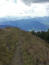 In Richtung Vorderalm gewinnen wir nur unmerklich an Höhe, dafür erreichen wir ein Hinderniss, das wir versuchen, weiträumig zu umgehen: eine Moorwiese, über die zwar rechts ein Bretterweg geht, dem wir jedoch mißtrauen. Aber schon davor im Wald schmatzen unsere Schuhe im aufgeweichten Boden. Weiter oberhalb steigen wir gekonnt über einen Stacheldraht und erreichen nach etwas Suchen den weiteren Wegverlauf. Wir orientieren uns in Richtung Hinteralm (1139m) und laufen nach ihr unterhalb vom Köstelkopf in südliche Richtung weiter. Hier zieht der Pfad deutlich an und bringt uns zu einer kleinen, fein rausgeputzen Brotzeitalm, die Bischofsfellnalm (1381m). Geschlossen. Nach der Alm begänne der Forstweg, auf dem wir den Hochgern umrunden könnten, wir aber machen uns auf zum Gipfel. Vor uns liegen 400 Höhenmeter, und leider bewölkt der Himmel zusehens. Der Wind hat auch gedreht. Nach wenigen Metern hören wir ein merkwürdiges Geräusch. Sowas wie "Oacheln" (Christian wird mich sicher verbessern). Er kennt das, hört es aber zum ersten Mal und ist fasziniert. Er meint, es könnte aus dem Keltischen stammen, jedenfalls sei davon "Ache" abgeleitet, weswegen viele Gebirgsbäche auf ... ache enden. Steil geht es hinauf und es wird immer windiger. Unser Steig endet direkt am Grat, wo es drüben gleich wieder hinunter geht. Wir aber laufen erstmal rechts ein paar Meter zum Gipfelkreuz.