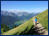Plötzlich flacht der Pfad ab und die Latschen geben die Sicht frei auf weitläufige Wiesenhänge und dem krönenden Abschluß, dem Gipfelkreuz des 2078m hohen Vorderunnütz, der seinen Nachbarn Hochunnütz um drei Meter überragt. Stäche die Sonne nicht und wäre der Energiehaushalt in Ordnung, wäre ich geneigt, einen Spurt zu wagen, zumal es über einen weichen Naturteppich ginge. Ist aber nicht drinn. In gewohnter Weise nähern wir uns dem Gipfel. Christian schneller als ich und weit voraus. Der macht Fotos von oben, ich von unten. Oben angekommen schauen wir erstmal ringsum. Unten der fjordartige blaugrüne Achensee mit weißen Tupfen, den Segeln von Booten, die in der Flaute schippern. Weit zurück das imposante Rofangebirge und gegenüber die dominierende Seekarspitze. Auf der anderen Seite der Guffert und davor, in einem weitläufigen Tal der Ort Steinberg. Auch von dort kann man hier rauf laufen (ca. 9km), der Pfad mündet etwa 70m unterhalb des Gipfels.