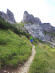 So, wie wir hochgekommen sind, geht's wieder hinunter, allerdings deutlich schneller. Wir erreichen die schmalen Felswände des Steinernen Tors und laufen unterhalb der Wände auf seiner steil abfallenden Nordseite zum Tor. Wie von einem Gipfel schauen wir hinunter in das Hochtal. Wir laufen den steilen Downhill hinunter und betreten nach insgesamt 9km Kilometern eine von wilder Rauheit geprägte Landschaft. Mal über Kuhtrails, mal über holprige Wanderpfade laufen wir endlich mal im Schatten - eine große Wolke hat unser Flehen erhört - entlang der Klobenjoch-Nordwände leicht bergab zum Kotalm-Mitterleger (1608m). Den erreichen wir nach 11,5 km. Feine Kilometer, die schöneren aber liegen noch vor uns. Weiter bergab geht es jetzt wieder in der Sonne auf Singletrails über Wiesen und durch Wäldchen, über Bäche und Zäune, immer wieder vorbei an Tränken mit Quellwasser in Richtung Köglalm (1462m). Dunkelgrün lugt der Achensee herauf, dessen Länge von 9km wir oben abgelaufen sind. In sich ruhen drüben die Seekar- und Seebergspitze, verbunden mit einem luftigen Grat. Die Unnütze halten sich noch versteckt, wenngleich wir sie natürlich schon viel früher aus der Ferne zu Gesicht bekommen hatten.