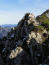 An andererer Stelle habe ich es schon gesagt, dass diese beiden Berge und der sie verbindende Grat mein Lieblings-Spielplatz sind. Vom ersten Meter an bin ich auf einem echten Bergpfad unterwegs. Die Strecke mit 13,5 km ist nicht allzu lang, dafür mit ihren 1230 Höhenmeter ambitioniert. Über eine Himmelsleiter schwebe ich von Gipfel zu Gipfel, von Hütte zu Hütte, schwebe von Hochgefühl zu Hochgefühl und blicke tief hinunter, mal nach rechts, mal nach links. Es gibt auch viel zu kraxeln, aber nie ist es ausgesetzt.