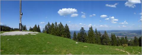 Christians Recherchen ergaben, dass noch haufenweise Schnee in den Bergen liegt und sogar neuer dazukam. Schattenseitig ab 1350m teilweise geschlossene Schneedecke, ab 1600m teilweise sogar noch sonnenseitig, zumindest größere Schneefelder. Nach unserer Tour im Altmühltal an fast schon einem Sommertag, hatten wir darauf keine Lust mehr. Was wir also brauchten, war ein niedriger Bergrücken für eine mittellange Runde, ein Inbetweener. Einen, den Christian mit dem Rad erreichen kann, weil er mit 17 Laufkilometer nicht ausgelastet ist. Nein, er brauchte, wie er es nannte, ein paar fußschonende Extra-Trainigseinheiten für die Zeugenbergrunde nach Ostern; 90km sind es geworden, immer schön gegen den Wind für ein paar Watt obendrauf.