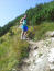 Wir wählen frei Schnautze den kürzeren Weg, nehmen den rassigen Downhill unter unsere Füße, laufen, steigen, hüpfen den steilen Bergrücken hinunter, folgen dem felsigen Pfad, treffen unterwegs eine Familie auf dem Weg nach oben und dann auf einen breiten Weg. Christian bleibt stehen. Guckt auf sein GPS. Wir sind falsch! Früh am Tag ist es nicht mehr, eher spät. Wir müssen dort hinauf, auf diesen Sattel, es sind nur 1,4km und ca. 300hm, motiviert mich Christian. Ich schlucke. Auch die Kröte. Wir drehen um und steigen den steilen Pfad nach oben, dorthin, wo wir nach links hätten hoch müssen. Macht die Strecke um 3km länger (28km) und um ca. 300m höher (1778hm). Zum Glück haben wir im Rofan Höhenmeter trainiert.