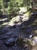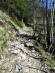 Wir schnaufen kurz durch und beginnen unseren Downhill, 800hm hinunter nach Spatenau. Schon auf den ersten Metern wird mir klar, dass Müdigkeit und mit ihr einhergehender Mangel an Konzentration fehl am Platz ist. Der Seitenalmen-Trail ist technisch sehr anspruchsvoll, jeder Schritt muss sitzen. Mein Hirn ist zwar mit Kohlenhydraten in Form von Hafermehl aufgetankt, dennoch bin ich nur im Rahmen meiner Möglichkeiten unterwegs, mal wandernd, mal laufend. Christian verliere ich bald aus den Augen. Ich treffe ihn erst wieder an der Wimmeralm im Plausch mit einer Mountainbikerin, die auf dem Weg nach oben ist. Die Hälfte hinunter haben wir geschafft, und damit den schwersten Abschnitt. Mit dem Verschwinden des Gesteins kehrt Kraft und Lockerheit zurück, und beides trägt mich hinunter. Nochmal geht es durch das "ausgetrocknete Bachbett", bevor wir mit unserem Ritual starten: Klappe auf, Doppelzisch, Doppelgrins, Prost! Nein, natürlich kein Bier mit Alkohol.