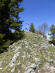 Noch immer unterwegs auf dem Alpenvereinsweg 219 steuern wir auf die Ellandalm zu, kuhlos, weil die Tische für die Kühe auf den Almen noch nicht reichlich gedeckt sind. Uns freut's, müssen wir nicht durch zerpflügte Almwiesen balancieren. Steil geht es hinauf, und weiter oben ist auch der Trail wieder da, der von unten nicht zu sehen war. Vor uns eine Windwurfzone. Von dem ehemaligen Wald ist hier kaum noch was übrig geblieben. Dafür entschädigt der Blick zum Wilden Kaiser und den dahinter liegenden Hohen-Tauern mit Großglockner und Großvenediger.