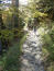 Weiter im Mischwald laufen wir auf einem sanft ansteigenden Pfad dahin, das trockene Laub raschelt unter unseren Füßen und oben in den Bäumen, die Wolken jagen noch immer dahin, und auch wir bekommen immer wieder ein paar Böen ab. Wenig später spuckt uns der Wald in einem Kessel auf der Nordseite des Hochgerns aus, an dessen Fuß unser zweites Etappenziel liegt, die Staudacher Alm (1150m). Die ersten 5km liegen hier hinter uns. Bei der nächsten Weggabelung könnten wir den Hochgern schon direkt in Angriff nehmen, die Überschreitung aber machen wir später. Wir folgen den Schildern Vorderalm und Brachtalm, laufen weiter, jetzt auf dem SalzAlpenSteig, bis wir an einer ausgetrockneten Bachreiße stehen bleiben. Die Wand gegenüber wirkt metallen, ziseliert von der Natur und geschmückt mit rostfarbenen Blättern. Hübsch! Der Pfad dran vorbei ist allerdings schmal. Das Laub zum Glück trocken.