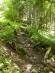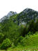 Das nächste Etappenziel ist Maria Eck, wo ein Trail hinüber zum Seekarkreuz geht, allerdings mit einer schwierigen Kletterpassage und einem kurzen, sehr ausgesetzten Stück. Mein Papier-Guide sagt, dass ich zunächst den Gipfel überschreiten und dann an der Kante ein Stück dem Weidezaun folgen soll. Dann soll es durch die Rinne hinüber zu dem Trail gehen. Verflixt! Weder hat der Weidezaun einen Durchlass, noch kann ich irgendwo einen Pfad hinunter in die Rinne ausmachen. Auch mein Pfad ist bald zu Ende, und mühsam latsche ich einen steilen, von Kuhklauen durchwühlten Bergrücken mit abermals viel Kraut hinunter und lande wieder bei der Schönbergalm. Nochmal grüße ich kurz meinen Gesprächspartner und mache mich auf zu Roß- u.Buchstein. Ein kurzes Stück geht es den Wirtschaftsweg zurück und dann weiter zur Ampertalalm. Oberhalb mache ich einen Wegweiser aus und laufe hoch. Wie vermutet verläuft hier der Trail zum Maria Eck. Ich laufe ihn ein Stück weit und finde es schade, ihn von oben nicht gefunden zu haben. Ich drehe wieder um laufe diesen Trail weiter, der erstmal in den Wald führt und dann ein kurzes Stück oberhalb des Wirtschaftswegs verläuft.