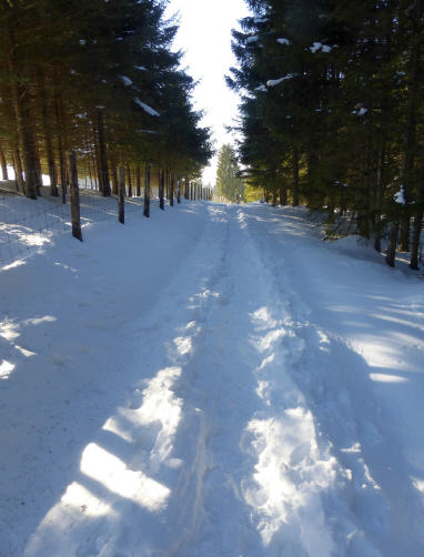 Nach diesem kurzen Kontakt mit dieser historisch beladenen Straße landen wir in Kaltenbrunn. Der nächste Anstieg wartet auf uns, der zum Gschwandtnerbauer, und von dort noch ein bisschen nach oben zum Höhenweg am Südhang des Wanks nach GAP. Und hier beginnt für uns das Wintermärchen: