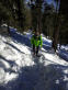 Fein säuberlich von Waldschraten mit Kuchenhebern freigeschaufelt schlängelt sich schmal der locker gespurte Pfad durch den winterlichen Bergwald, dem wir folgen, begleitet von tausendfach aus Schneebergen zugeworfenen glitzernden Lichtern, die uns aufladen, Kraft geben und Glück schenken. Wenn etwas einzigartig ist, dann ist es das Einssein mit der Natur.