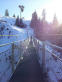 Diese letzten fünf menschenleeren Kilometer nach Garmisch-Partenkirchen waren anspruchsvoll zu laufen, da hier noch nicht sehr viele unterwegs waren, und der Fuß, wenn ein Schritt in der schmalen Spur zu weit nach links oder rechts gesetzt war, oftmals im Schnee versank. Irgendwo auf diesem Weg lag dann auch mit 1180m der höchst Punkt, wenngleich ich mich an diesen Anstieg nicht erinnern kann. Das Gelände wird freier, irgendwo lese ich auf einer Tafel Adamsweg, und dann Hacker-Pschorr-Brücke. Dorthin laufen wir, und landen an einer neuen Hängebrücke, die sich luftig über die Faukenschlucht spannt und lustig schaukelt, wenn man über sie hinweg läuft. Weiter geht's hinunter nach GAP und noch zwei Kilometer durch den östlichen Teil von Garmisch hinüber zum Stadion. Wieder beim Auto frieren mir wieder die Finger, und wieder sind Christian und ich einfach nur happy über diese gelungene Runde. Am nächsten Tag erhalte ich von Christian eine E-Mail mit folgendem Wortlaut: "Bin immer noch ausgefüllt mit Glücksgefühl und Laufrhythmus :))) Was war das für ein Lauf!!!!