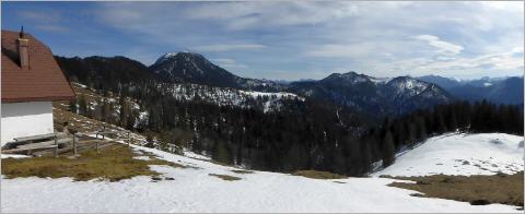 Panoramablick - Staffelalm. Bildmitte: Benediktenwand