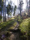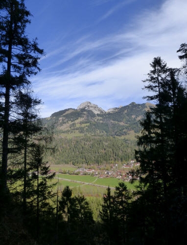 Über eine Wiese laufe ich direkt auf den Seeberg zu und erreiche am Ende eine Bank und den ersten Trail. Die Serpentinen bringen mich im Mischwald hinunter bis kurz vor Bayrischzell, wo ich einen kleinen Abstecher zum Wasserfall mit seinen grünen Gumpen mache. (Schon ein Stück vorher an einer Weggabelung geht es links nach "Bayrischzell über Grüne Gumpen" und geradeaus weiter "Bayrischzell". Dieser Tafel bin ich gefolgt. Nach 4km erreiche ich den Ort. Bei den ersten Häusern orientiere ich mich in Richtung Kirche, laufe durch den Mini-Stadtpark, dort rechts zum Hotel Gasthof zur Post und biege nach links ein. Wenig weiter überquere ich die Bundesstraße 307 und befinde mich auch schon am Wanderparkplatz Seeberg u.a. Rechts vom hanglagigen Minigolfplatz beginnt mein Anstieg. Gleichzeitig bin ich unterwegs auf dem Bayrischzeller Höhenweg (5 Std.), der hier beginnt und mich mit einer kurzen Unterbrechung bis zur Klarer Alm begleiten wird.