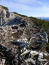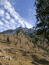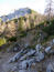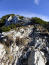 Rasch liegen die 100hm hinter mir. Am Sattel tauche ich ein in den von Sonnenstrahlen durchfluteten lichten Bergwald. Eine Wandertafel weist mir den Weg: "Seebergspitze", versehen mit einem schwarzen Punkt. Wäre ein 3er-Schwierigkeit, ich las aber von einer 2-er-Wanderung. Jedenfalls ist es die leichteste Route von drei Möglichkeiten. Den Westgrat konnte ich schon mehrfach von unten studieren, sollte schon gehen. Vor mir liegen 400hm auf einem Kilometer. Das ist richtig steil. Nach einer Latschengasse erreiche ich freies schrofiges Gelände.