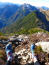 Setzen mag ich mich jetzt nicht. Im Stehen trinke ich mein in Wasser gelöstes Hafermehl, angereichert mit BCAA. Dann drehe ich eine kleine Runde auf diesem kleinen Fleck, mache Fotos in alle Richtungen und auch von dort, wo ich hergekommen bin und wieder runter muss. War ein Fehler. Ein Minigrusel stellt sich ein, die Atmung kommt leicht auf Touren. Will dieses Gefühl loswerden. Geht aber nur, wenn ich mich langsam und ruhig an den Abstieg mache. Hat man beim Raufgehen den Blick meist auf den Pfad gerichtet, ist das beim Runtergehen anders. Die Tiefe ist ein ständiger Begleiter. Mit meinen Stöcken beginne ich konzentriert den Abstieg und habe die kritischen Stellen bald hinter mir. Ich wechsle wieder auf die Nordseite, erreiche bald die Latschengasse und freue mich, wildes Vogelgezwitscher aus den Baumkronen über mir zu hören. Soweit immerhin funktionieren meine Ohren noch. Die aber bekommen am Pasillsattel wieder Texas-Rock, Bluegrass und epischen und melodischen Dark-Metal zu hören, wie beispielsweise OMNIUM GATHERUM - Gods Go First.
