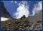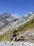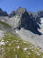 Dann schaue ich auf meinen weiteren Wegverlauf hinauf zum Tajatörl. Noch klitzeklein ein paar Felszacken links unterhalb des Grünsteins, nicht allzuweit entfernt. Ein paar Schluck Wasser, und ich laufe los, laufe hinunter zum See und beginne dort mit dem Aufstieg - für mich einer der schönsten Abschnitte, die ich je gelaufen bin. Immer wieder bleibe ich stehen, drehe mich um und kann mich nicht satt sehen an der Szenerie rund um die Coburger Hütte und dem Bergauge, das aus dem Felskessel zu mir herauf schaut. Ich laufe weiter die engen Serpentinen hoch, lande auf einer flachen grünen Hochebende, bevor es im Drachenkar geröllig wird. Der Weg schwenkt nach links und vor mir taucht das Tajatörl (2257m) auf. Über große Felsblöcke hinweg nähere ich mich rasch der Pforte, die mich in eine andere Bergwelt bringen wird.