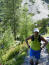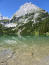 Nach knapp drei Kilometern erreiche ich den Abzweiger, der direkt zum Tajatörl führt. Ich aber laufe die Runde gegen den Uhrzeigersinn und sammle die Perlen, eine nach der anderen, so bald als möglich, um sie auf dem kargen, schottrigen Downhill nach dem Tajatörl dabei zu haben. Auf dem Weg zur ersten Perle, dem Seebensee, erreiche ich eine Lichtung, die den Blick auf die wolkenlose Zugspitze freigibt. Auf einem Bankerl sitzt eine Wanderin. Was mich in diesem Moment gebissen hat, weiß ich nicht, jedenfalls denke ich mir, die sitzt da wie bestellt, um ein Foto von mir vor dieser Kulisse zu machen. Ich: Das hatte ich nicht erwartet, dass du tatsächlich da sein wirst. Sie: guckt. Ich: Ich hatte dich ja bestellt, damit du hier ein Foto von mir machen kannst, und halte ihr die Kamera hin. Sie: guckt, nimmt die Kamera. Ich: erkläre ihr, Querformat, schwarzen Knopf drücken. Sie, englisch, mit französischem Akzent: ... hat es nicht ganz verstanden. Ich, auf englisch: This way ... and black button. Vielleicht war es gut, dass sie den Anfang nicht verstanden hat, und ich gelobe, mich zukünftig mit Späßchen ein wenig zurückzuhalten. Gelacht haben wir beide dennoch viel.
