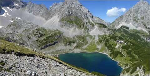 Auf dem Weg zum Tajatörl - Blick auf Drachensee und Coburger Hütte