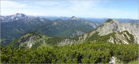 Blick auf den Bayerischen Schinder In der Bildmitte die Halserspitz, die den dahinterliegenden Blaubergkamm verdeckt.