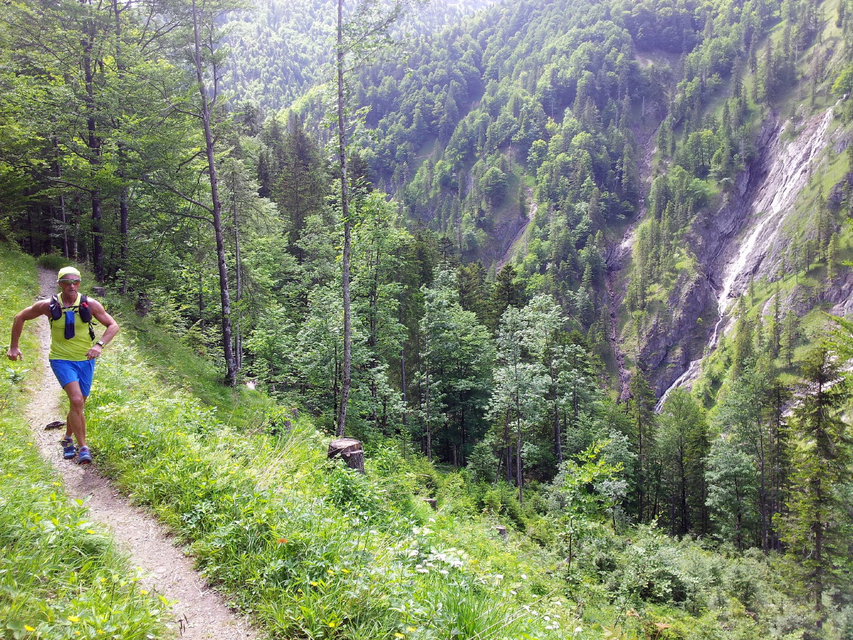 Wie schon im Herbst 2017 geht es ins Valepp, diesmal mit Christian. Weil ich damals nach der Ritzelsberg-Alm auf der Südseite des Österr. Schinder orientierungslos einfach einem Bachbett gefolgt war und danach nicht die Trails hinunter zur Erzherzog-Johann-Klause gelaufen bin, wusste ich, diese Runde laufe ich nochmal. Sie ist 20km lang und unterfüttert mit ca. 1500hm.