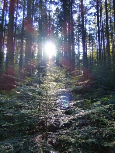 Ich lande wieder auf dem Hauptweg und laufe in die Richtung, aus der ich gekommen war, weil ich eine Brücke unten im Farnbachtal erinnere, von wo es auch wieder hoch zum Taubenberg geht. Generell läßt sich zur Orientierung sagen: man kann sich auf diesem schmalen waldigen Rücken zwar verlaufen, die möglichen Umwege aber halten sich in Grenzen. Nach gut einem Kilometer in östliche Richtung (Mangfalltal) taucht die erwähnte Brücke auf. Auch hier: kein Wegweiser. Ich biege rechts ab, da ich beim letzten Mal von da gekommen war. Der Weg zieht wieder leicht an und bringt mich zu einer erneuten Abzweigung. Ohne Schild. Ich entscheide mich für einen Weg, wird schon irgendwie richtig sein. Oben angekommen ein neues Sonnenfenster und darauf ein Geisterhaus. Leider habe ich es nicht fotografiert. Meine Recherche zu Hause brachte auch nichts. Könnte der Baderer oder Badererhof sein. Ein großes gelb getünchtes zweistöckiges Gebäude mit einem dutzend Fenster, mal mit, mal ohne Vorhang. Eindruck: unbewohnt. Hinten aber ein Klingelschild. Davor die Straße, führt von West nach Ost. Kein Schild. Ich laufe rechts weiter, Richtung Westen. Und lande noch vor dem Maroldhof auf dem fetten Hauptweg. Nach 21km laufe ich vorbei am Wasserturm, der ersten "Sehenswürdigkeit" beim Hochlaufen. Nach weiteren 3km bin ich wieder am Parkplatz unterhalb der Kirche. Und nach 40km wieder in München, wo ich umschalte und mich mit neuen natürlichen Killerzellen (NK-Zellen) und von "Dreck" befreiten Zellen auf die Arbeit stürze.