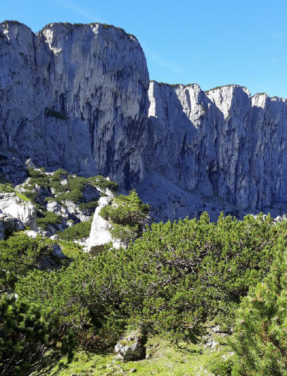 Großartig der Blick hinüber auf die Seeberg- und Seekarspitze, die über einen Kamm verbunden sind und deren steil abfallende Westflanken dem Achensee einen fjordartigen Charakter verleihen, weswegen dieser See auch Fjord der Alpen genannt wird. Auch wenn ich jetzt noch nicht daran denken wollte, dass mein Rückweg auf der anderen Seite des Sees über das Tal hinter diesem Bergmassiv liegt, schnaufe ich einmal tief durch und focussiere mich auf mein erstes Zwischenziel.