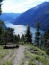 Stramm geht es jetzt auf die Kotalm zu, danach weiter über eine Fahrstraße, und euphorisiert durch die Landschaft und mein Tempo rausche ich hinunter ... und bemerke viel zu spät, dass ich falsch sein muss. Kurzer Blick aufs Navi und den einen Kilometer steilen Fahrweg wieder rauf. Schuld bin ich, wenngleich ich es deppert finde, wenn man die Wandertafeln so an eine kleine Fichte anbringt, dass sie von oben kommend kaum zu sehen sind. Diese bringen mich wieder zurück auf die geplante Route, einen abwechslungsreichen Trail Richtung Kölgalmsattel. Nach gut 12km erreiche ich die Köglalm und mache eine Pause. Vor der Alm ein Brunnen. Ich drehe am Hahn. Wasser. Zweite Elektrolyt-Tab. Von einem Mountainbiker erfahre ich, dass der direkte Pfad hinunter nach Achenkirch unten beim letzten Gebäude - ein neueres Holzhaus - beginnt. Im Wald laufe ich bergab, erreiche eine Bank mit bildschönem Blick über den See und finde, dass diese Aussicht und der Trail, der mich hierhergebracht und bald ganz hinunter bringen wird, es wert waren, hierher zu kommen.