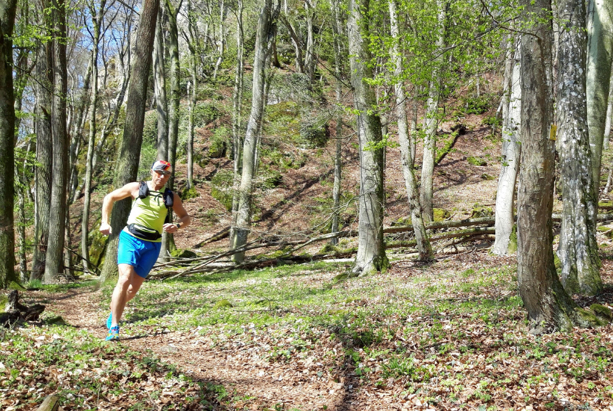 Ist aber falsch. Ich laufe wieder hoch zu 2,3 und 11. Weiß der Kuckuck, wo es weiter geht. Der Akku geht auf 30 Prozent. Vor mir aber noch knapp die Hälfte des Weges. Ich will laufen und nicht navigieren, beschließe, noch bis zur Burg, einer ehemaligen Wehranlage auf einem Jurafelsen zu laufen und dann die Runde zu beenden. Mit knapp 18km und 700hm aus dem Altmühltal zurückzukehren war nicht der Plan. Immerhin habe ich dazugelernt: In einem weitläufigen Gebiet mit einem Netz an Wegen macht es keinen Sinn, eine mit GPS-Daten vorgegebene Runde nachzulaufen.