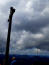 Nach der Sandbichleralm habe ich dann endlich einen Trail unter den Füßen, der weiterhin sanft ansteigt. Der Himmel über mir ist zugezogen. Ein Wechsel zwischen dunklen und weißen Wattewolken. Vor mir an einem steilen Grashang dann die Wunden einer abgegangenen Lawine. Mit gedrosseltem Tempo drüber weg. Wenig später und nach bisher 6 gelaufenen Kilometern wird es steil. Der Aufstieg zum Auerspitz beginnt. Holzbohlen helfen, eine schrofige Stelle zu überwinden. Ich erreiche den Grat und nach gut 150hm den felsigen Gipfel (1811m) mit seinem kunstvoll geschmiedeten Kreuz. So klein der Gipfel auch ist, die Rundumsicht ist großartig. Drüben das Hintere Sonnwendjoch, nordwestlich die Rotwand und der Hochmiesing, verbunden durch den Miesingsattel. Rechts tief unten der Soinsee und darüber die Zacken der Ruchenköpfe. Ein beliebter Kletterfels, der aber auch über die kaum bekannte und versteckte Schnittlauchrinne relativ leicht zu besteigen sein soll, so erfahre ich wenig später.