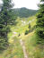 Vorbei an mehreren Gebäuden geht es erstmal noch über einen Pfad weiter bergab, dann aber hat die Romantik ihr Ende gefunden. Ich lande auf einem Forstweg, von dem ich nur weiß, dass er mich weit hinunter zu einem Gatter bringen wird, von dem aus es dann nochmal drei Kilometer sind, bevor ich eine Kreuzung erreiche, an der ich links abbiegen muss, um zum Silberghaus zu kommen. Das Gatter kommt und kommt nicht, bis es dann doch noch kommt. Die weiteren drei Kilometer ziehen sich wie Kaugummi. Was mich tröstet, ist der ständige Blick auf den Kleinen und Großen Traithen, wo ich vor kurzem unterwegs war. Endlich das Silberghaus. Von dort geht es die letzten 200hm hinunter, etwas ruppig, gut für die Konzentration.