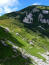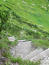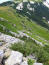 Links unten die Kümpflalm. Hier wurde am 26.6.2006 ein Flüchtling aus Südtirol mit zwei Schüssen niedergestreckt, JJ1. Ein von den Einheimischen nicht gern gesehener Badegast im Soinsee, dem man es nicht verübeln kann, sich hierher verirrt zu haben. Wer schon mal hier war, weiß um die Reize dieses Bergidylls. Abschuß im Juni, just vor der touristischen Hochsaison. Heute kann man JJ1, bekannt als Bruno der Bär, im Münchner Museum Mensch und Natur bewundern. Mit knapp 1000hm im Sack freue ich mich auf das, was noch vor mir liegt und von hier aus gut zu sehen ist. Was ich allerdings nicht sehe: Batz, Wasserlöcher, rutschiger Fels, direkt vor meiner Nase, beim Abstieg und Queren hinüber zur Kümpflscharte.